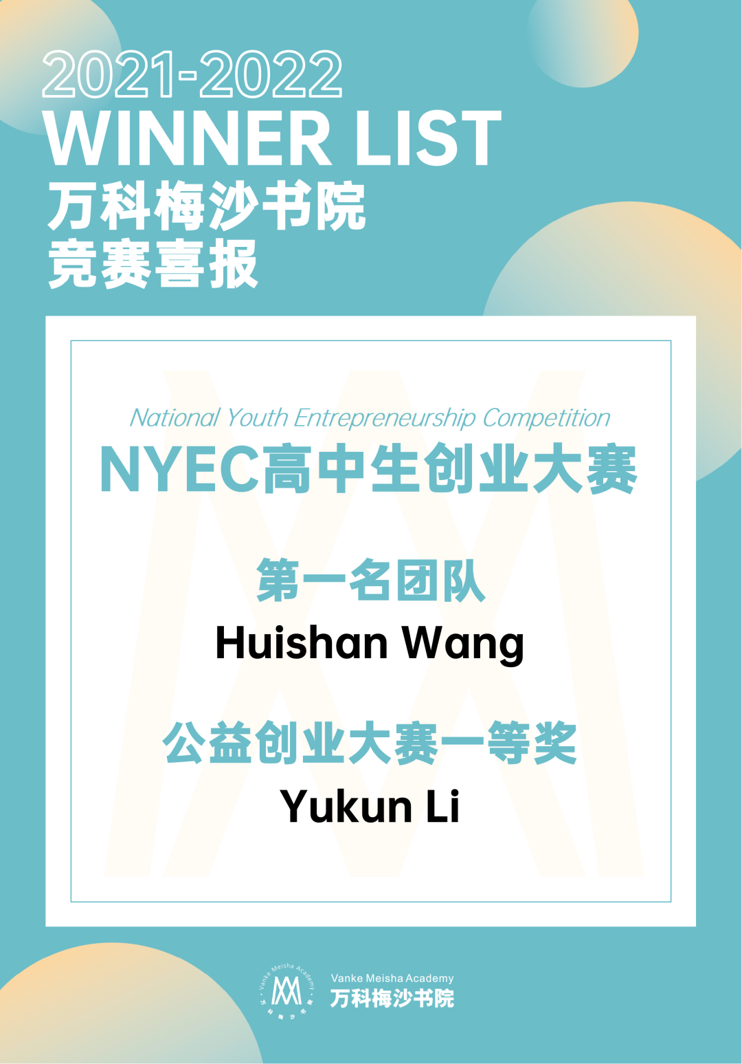全国高中生创业大赛(National Youth Entrepreneurship Competition),简称NYEC,比赛致力于打造面向全国高中生的全真实创业体验。大赛源自美国“骇客马拉松”概念与赛制形式,不同学科的高中生齐聚一堂,限定时间内完成:提出创意丨组建创业团队丨做出项目DEMO丨最终路演全部流程,在投资人面前讲述项目争取投资,完成你想过却没机会实现的脑洞想法。